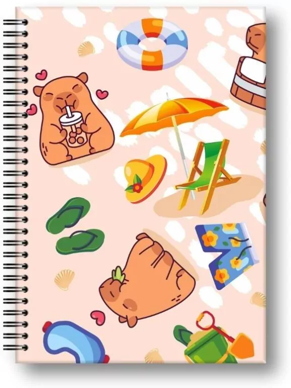 PENMATE Brulion A5 w twardej oprawie w spirali 80 kartek w kratkę T 0119 Kapibara plaża folia mat nierysująca