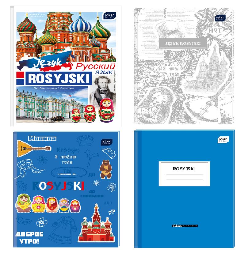 Brulion tematyczny A5 80-kartkowy Interdruk w twardej oprawie do języka rosyjskiego. Brulion o wysokiej jakości wykończenia, szyty, ze wzmocnionym grzbietem. Okładka pokryta błyszczącą folią. Wewnątrz papier offsetowy o gramaturze 60g/m2 biały, idealnie gładki. Nowoczesne wzory i intensywne kolory okładek dopasowane do każdej grupy użytkowników.