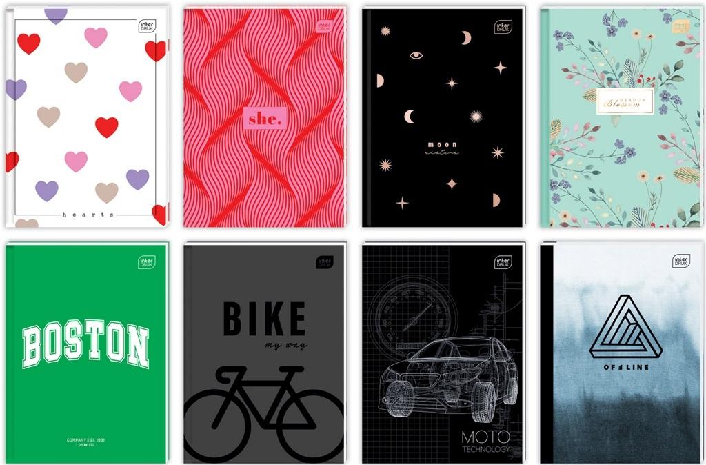 Brulion A5 kratka, 96 kartek,oprawa twarda,mix wzorów. 5 sztuk w opakowaniu zbiorczym. Producent Interdruk.