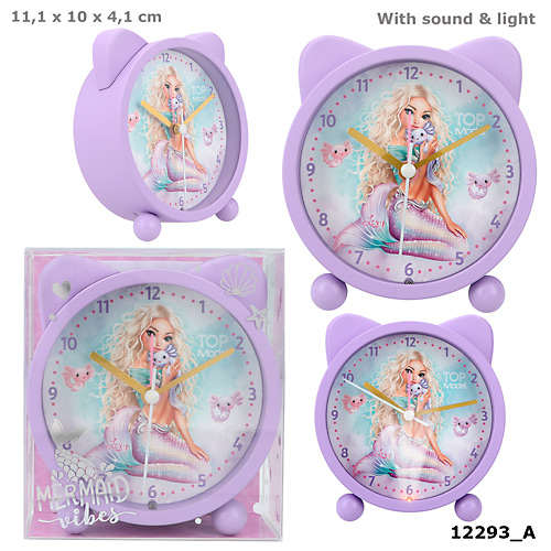 Budzik Top Model z uszami, budzik w przezroczystym plastikowym opakowaniu, cichy, nie ma odgłosu tykania.