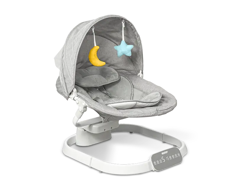 Neno Nube to elektryczny bujaczko-leżaczek z łącznością BT. Bujaczek odtwarza Twoją ulubioną muzykę ze smartphona. Za pomocą pilota dołączonego do zestawu możesz sterować dźwiękiem, kołysaniem i częstotliwością bujania. Wahadłowe ruchy kołysania przypominają naturalne tulenie niemowlęcia stymulujące rozwój. Stabilizujący system ""ultrasafe"" i 5-punktowe regulowane pasy bezpieczeństwa. Leżaczek posiada zdejmowany daszek i moskitierę. To wygodne rozwiązanie dla rodzica i ulga w codziennym noszeniu dziecka. Wejście: 100-240V Wyjście: 5V/1A Zasilanie: bateryjne lub sieciowe Częstotliwość: 50/60 Hz 5 poziomów bujania Regulowane oparcie Regulowane zadaszenie Moskitiera Pluszowe zawieszki Wbudowane kołysanki Dla dzieci do 9 kg