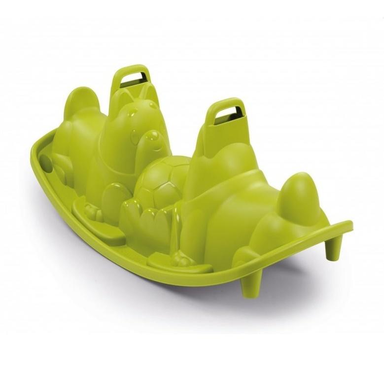 Huśtawka - bujak Piesek Zielony Powłoka UV 830201. Uroczy piesek zaprasza dzieci do wspólnej zabawy. Opływowy kształt bujaka gwarantuje bezpieczeństwo podczas bujania. Składający się z 2 wygodnych i ergonomicznych siedzeń oraz 1 centralnego fotela, bujak piesek daje dzieciom możliwość zabawy z przyjaciółmi. Podczas bujania stopy dzieci mogą wygodnie spoczywać na płozie. Konstrukcja huśtawki posiada dodatkowe zabezpieczenie przed upadkiem. Z pieskiem czeka maluszki wspaniała i komfortowa zabawa. Dzięki stabilnej konstrukcji i działaniu powłoki anty-UV, która gwarantuje wytrzymałość i lepszą trwałość kolorów, huśtawka - bujak piesek może pozostać w Twoim ogrodzie przez długi czas!