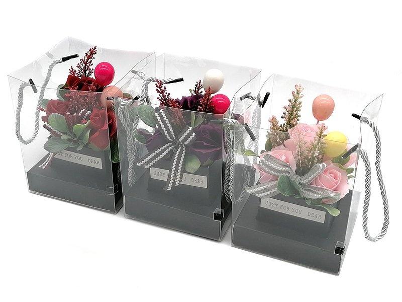 bukiet kwiatów w ozdobnej torebce, 16x12x12cm; PVC