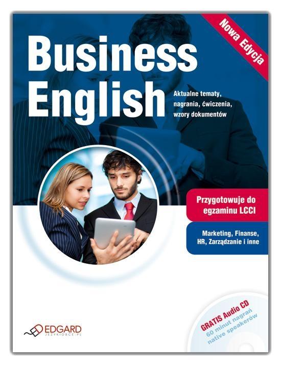 Kurs Business English uczy nowoczesnego języka biznesu. Adresowany jest do osób, które na co dzień w pracy posługują się językiem angielskim, a także studentów marketingu, zarządzania i ekonomii. Pakiet przeznaczony jest dla osób na poziomie średnio zaawansowanym i zaawansowanym (poziomy B1-C1 wg klasyfikacji Rady Europy). Business English uczy specjalistycznego słownictwa, doskonali rozumienie ze słuchu i kształci umiejętność komunikowania się w sytuacjach biznesowych, zarówno w kontaktach formalnych, jak i mniej oficjalnych. Każdy z 13 rozdziałów Business English składa się z 5 części: Reading, Listening, Writing, Vocabulary, Intresting Facts. W poszczególnych działach zamieszczono: teksty poruszające aktualne tematy, słowniczki, ćwiczenia sprawdzające umijętność czytania i słuchania ze zrozumieniem, wzory dokumentów i listów z komentarzami oraz ciekawostki. Na końcu podręcznika umieszczono słowniczek angielsko-polski oraz klucz odpowiedzi. Dołączona do książki płyta zawiera 60 minut wysokiej jakości nagrań native speakerów. W Nowej Edycji dodano 10 przykładowych testów - po dwa z każdego poziomu oraz aktualne artykuły dotyczące nowinek biznesowo-technicznych omawiające takie tematy jak: motoryzacja, finanse, marketing i zarządzanie. Książka przygotowuje do egzaminu LCCI (London Chamber of Commerce and Industry) English for Business. Zawiera informacje o egzaminie i przykładowe testy do wszystkich pięciu poziomów. Tematyka oraz słowmictwo odpowiadają w pełni wymaganiom egzaminacyjnym LCCI.