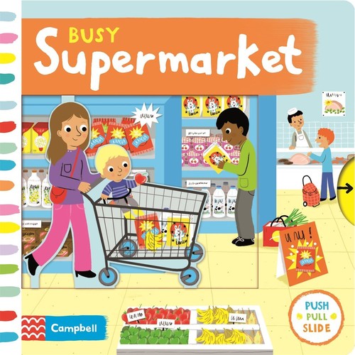 Take a trip to the supermarket with Mum! Help her choose the yummy food on offer, fill the trolley to the top, whizz down the aisles and pay at the checkout. Children will love playing with the easy-to-handle mechanisms in this bright and colourful board book with wonderful illustrations by Mélanie Combes and gentle rhyming text, which is part of the BUSY BOOK series.