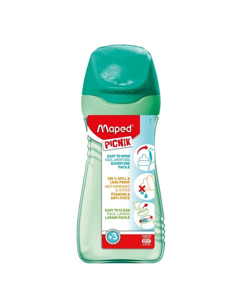 *Butelka wielokrotnego użytku wykonana z tworzywa sztucznego wolnego od BPA.* Proste otwieranie jedną ręką poprzez uniesienie zatyczki. Automatyczne uszczelnienie po zakończeniu picia. Szeroki otwór i demontowane wszystkie elementy dzióbka do picia umożliwiają dokładne umycie butelki i wszystkich jej części. Przystosowana do mycia w zmywarce.* Nie przenosi i nie utrzymuje zapachów płynów.* Pojemność 430 ml. Kolor zielony. JS.: 1 szt.