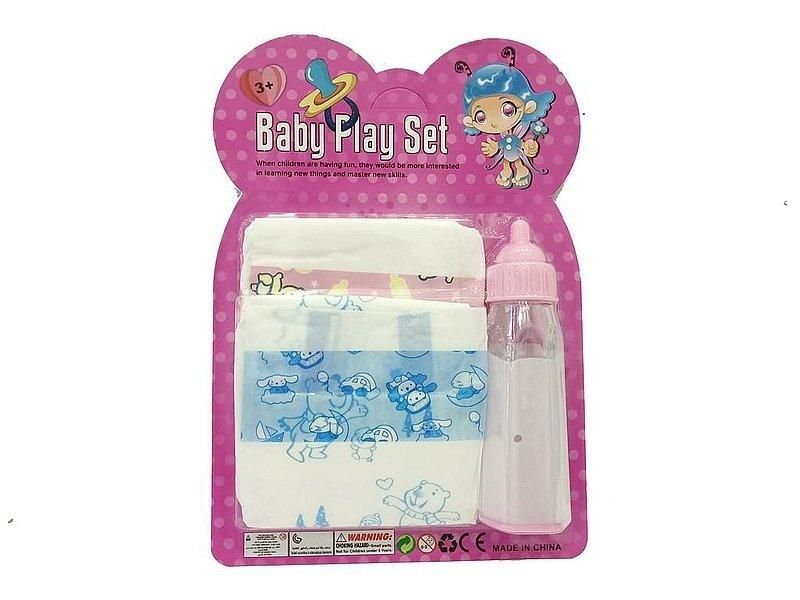 estaw dla lalek, butelka i pieluszka; 26x18x5cm, B/C