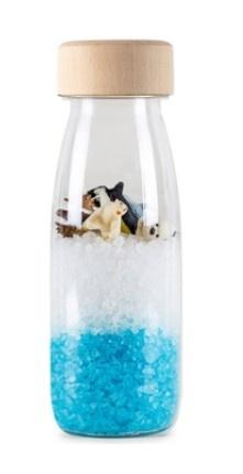 Butelki sensoryczne od Petit Boum to kolorowy świat zamknięty w niewielkiej, przystępnej dla dziecka formie. Bawią, uczą i stymulują wyobraźnię! Pozwól swojemu dziecku poruszać, potrząsać i manipulować butelką, aby odkrywać kolory i figurki tematyczne zamknięte w butelce. Różnorodna zawartość butelek pozwala odkrywać nowe, ciekawe dźwięki charakterystyczne dla ukrytych w butelce elementów. Z butelką Arktyka zanurzysz się w arktycznym świecie i odkryjesz ukryte za grubą warstwą lodu zwierzęta polarne. Gdy promienie słońca przenikają przez butelkę, lód ukazuje swoje piękne odcienie bieli i błękitu, tworząc hipnotyzujący widok. Czy uda Ci się znaleźć pingwina, który zaginął na biegunie południowym?