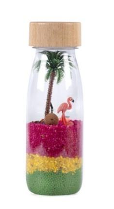 Butelki sensoryczne od Petit Boum to kolorowy świat zamknięty w niewielkiej, przystępnej dla dziecka formie. Bawią, uczą i stymulują wyobraźnię! Pozwól swojemu dziecku poruszać, potrząsać i manipulować butelką, aby odkrywać kolory i figurki tematyczne zamknięte w butelce. Różnorodna zawartość butelek pozwala odkrywać nowe, ciekawe dźwięki charakterystyczne dla ukrytych w butelce elementów. Z butelką Flaming przeniesiesz się na tropikalną wyspę i odkryjesz ukrytego wśród złocistego piasku skrzydlatego przyjaciela.