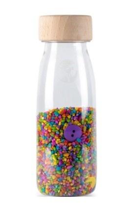 Butelki sensoryczne od Petit Boum to kolorowy świat zamknięty w niewielkiej, przystępnej dla dziecka formie. Bawią, uczą i stymulują wyobraźnię! Pozwól swojemu dziecku poruszać, potrząsać i manipulować butelką, aby odkrywać kolory i figurki tematyczne zamknięte w butelce. Różnorodna zawartość butelek pozwala odkrywać nowe, ciekawe dźwięki charakterystyczne dla ukrytych w butelce elementów. Zabawa butelką od Petit Boum rozwija zmysły i wyobraźnię dziecka! Czy rozpoznasz butelki po ich dźwiękach? Czy znajdziesz w środku guziki? :)