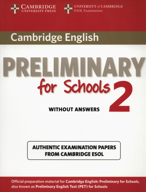 Cambridge English Preliminary for Schools 2 contains four complete and authentic examination papers for Cambridge English: Preliminary for Schools (PET for Schools). This collection of past examination papers is aimed at a young audience, and provides the most authentic exam preparation available. These past papers allow candidates to familiarise themselves with the content and format of the examination and to practise useful examination techniques. Audio CDs containing the exam Listening material, a Student's Book with answers, and a Self-study Pack containing the Student's Book with answers and Audio CDs are available separately.
