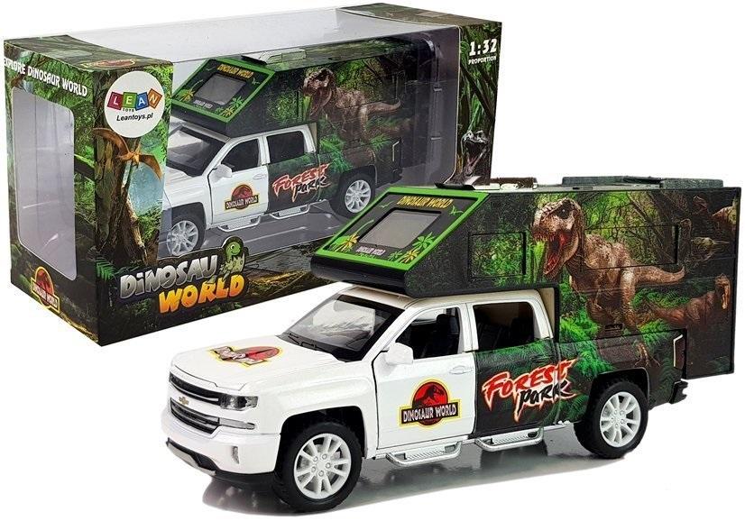 Camper z Dinozaurami Biały Jeżeli Twoje dziecko jest fanem prehistorycznych dinozaurów, to będzie idealne autko dla niego. Camper jest cały oklejony podobiznami prehistorycznych zwierząt, w zależności od wyobraźni twojego dziecka może służyć jako auto do udania się w długą podróż lub może własne centrum dowodzenia nad obserwacją prehistorycznych zwierząt niczym z PARKU JURAJSKIEGO. Decyzja należy wyłącznie do małego odkrywcy. Będzie rewelacyjnym prezentem dla dziecka, które uwielbia doświadczenia i odkrywanie nowych zakątków świata. W środku wyposażona jest jak w normalnym domu, dwupiętrowym. Na pierwszym piętrze znajdują się łóżko i kuchni. Na drugim piętrze auta można według wyobraźni małego podróżnika stworzyć centrum dowodzenia lub garderobę. Auto posiada otwierane drzwi, po pociągnięciu do tyłu i dociśnięciu auto mknie na przód. Wykonane w skali 1:32. Dodatkowo wydaje dźwięki szybkiej jazdy, przednie reflektory świeca jasnym światłem oświetlając drogę. Uruchamiają się poprzez dociśnięcie autka do podłoża. Wymiary autka: 21 cm x 6 cm x 9 cm Wymiary opakowania: 26 cm x 10 cm x 13 cm Zabawka przeznaczona jest dla dzieci powyżej 3. roku życia. Ciężarówka posiada certyfikat CE i jest zgodna z normą EN 71. Posiada metalowe elementy (karoseria autka) bez ostrych zakończeń, dlatego jest całkowicie bezpieczna. Zapakowana jest w kartonik z przezroczystą witrynką, dzięki czemu nadaje się idealnie na prezent. Zasilana jest 3 bateriami AA 1,5 V.