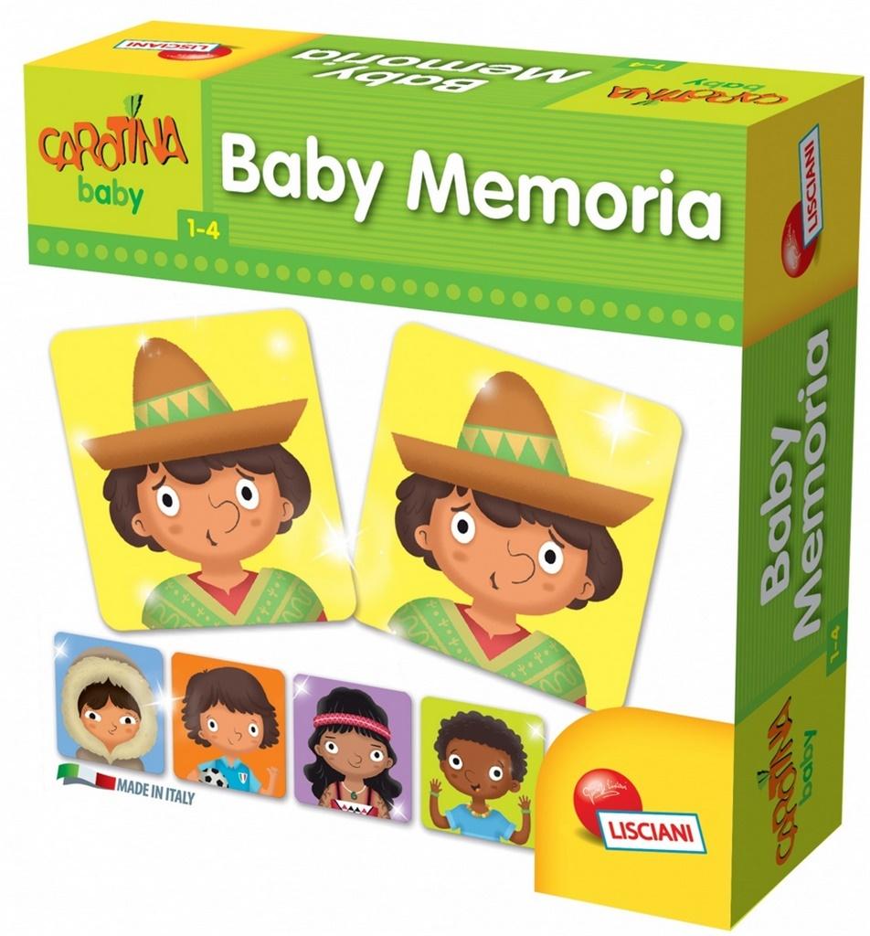 Baby Zapamiętaj to klasyczna gra pamięciowa. Dziecko szuka par wśród 32 odwróconych kart z kolorowymi postaciami. Gra rozwija pamięć i koncentrację. Linia Carotina Baby została stworzona specjalnie dla dzieci powyżej pierwszego roku życia, z wykorzystaniem dużych elementów z grubej tektury pokrytych kolorowymi obrazkami.