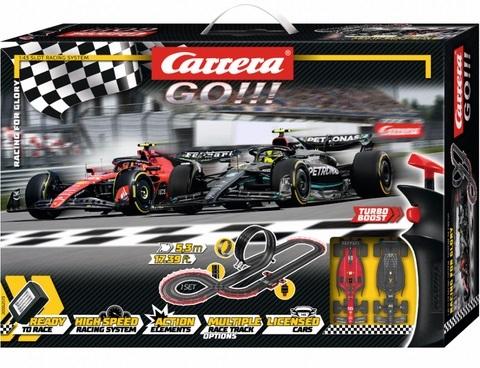 Wyjątkowa klasa emocji związanych z wyścigami Formuły 1 Carrera GO!!! Zestaw Racing for Glory przenosi pełne akcji wyścigi najlepszych zespołów Formuły 1 do salonów całego świata. Na torze wyścigowym o długości 5,3 m legenda Formuły 1 Lewis Hamilton wjeżdża na pole startowe w Mercedesie-AMG F1 W14 E Performance L. Hamilton, gotowy do walki ze wschodzącą gwiazdą Carlosem Sainzem w swoim Ferrari SF-23. Pętla toru zapewnia dodatkowe emocje w wyścigach z pełną mocą, wymagając od kierowców Carrery wszystkich umiejętności, z których mogą skorzystać podczas przyspieszania na prostych i pokonywania niebezpiecznych zakrętów. Młodzi kierowcy w wieku od 6 lat i starsi muszą być na szczycie swoich umiejętności, aby opanować wymagający wąski odcinek i zająć pierwsze miejsce w pojedynkach z dużą prędkością. Do kontrolerów słuchawek dołączone są przyciski turbo boost, zapewniające jeszcze większą prędkość i przyspieszenie. Czy masz nerwy prawdziwego mistrza?