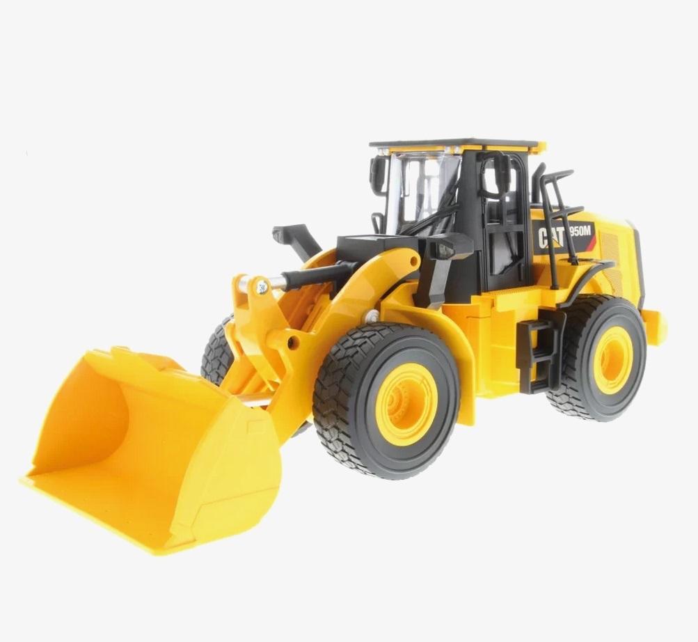 Duża koparka - ładowarka na placu zabawy! Ładowarka kołowa Carrera RC CAT 950M na oryginanej licencji Caterpillar w skali 1:24 gwarantuje realistyczną zabawę. Indywidualne mechanizmy ruchu w przednim ramieniu i łopacie pozwalają CAT 950M przesuwać stosy piasku na placu zabaw. Ładowarka kołowa to wyjątkowy pojazd dla młodych budowniczych. Pojazd wykonany w technologii 2,4 GHz, pełne sterowanie - Full Function. Czas zabawy ok. 40 min. Czas ładowania ok. 210 min. Gotowy do zabawy: w zestawie: kabel ładowarki, wydajny akumulator 7,4V 600mAh 2S Li-Ion i baterie do kontrolera. Długość pojazdu: 39,5 cm. Porusza się z prędkością 3 km/h. Wyposażona w światła LED, z efektami dźwiękowymi. Ruchome elementy łyzki w dwóch płaszczyznach, funkcja demo.