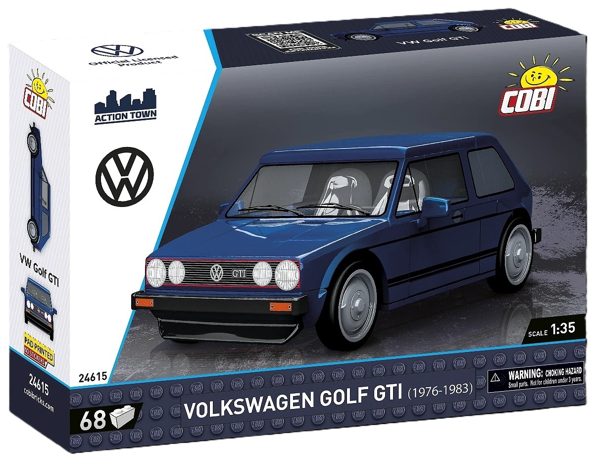 COBI- 24615 Volkswagen Golf GTI (1976-1983) ACTION TOWN 68 elementy Grupa wiekowa 5+ Skala: 1:35 Zestaw konstrukcyjny COBI Volkswagen Golf GTI (1976-1983), w niebieskim kolorze, to jedno z najważniejszych aut w historii motoryzacji. Dzięki wiernemu odwzorowaniu detali model ten jest doskonałą repliką, która zadowoli zarówno pasjonatów motoryzacji, jak i miłośników budowania z klocków. Model w skali 1:35 zachwyca precyzyjnym odwzorowaniem charakterystycznych cech Golfa GTI: poszerzonymi błotnikami, szerokimi gumowymi oponami oraz dużym, przednim spojlerem. Zestaw składa się z 68 elementów, które dostarczą radości zarówno fanom motoryzacji, jak i osobom lubiącym wyzwania konstrukcyjne. Zestaw COBI to coś więcej niż tylko model - to prawdziwa przygoda! Budowanie tego legendarnego auta to doskonała okazja, by połączyć pasję do motoryzacji z kreatywną zabawą klockami. Dzięki przejrzystej instrukcji każdy niezależnie od wieku, może łatwo złożyć model i cieszyć się efektami swojej pracy. Po złożeniu Volkswagen Golf GTI staje się świetnym elementem dekoracyjnym - można dumnie postawić go na półce w swoim pokoju, obok innych modeli aut od COBI. A jeśli masz ochotę na emocjonujące wyścigi, z łatwością zabierzesz go ze sobą w podróż lub zorganizujesz zawody z przyjaciółmi. Zestaw COBI Volkswagen Golf GTI to obowiązkowy element dla każdego fana motoryzacji i konstruowania z klocków. Stwórz model tej sławnej maszyny, która na zawsze odmieniła świat sportowych aut i rozwijaj swoją kolekcję kultowych Volkswagenów od COBI, uzupełniając ją o inne modele i kolory. 68 wysokiej jakości elementów, Wyprodukowane w UE przez firmę z ponad 35-letnią tradycją, Spełniają normy bezpieczeństwa dotyczące produktów dla dzieci, W pełni kompatybilne z innymi markami klocków konstrukcyjnych, Czytelna i intuicyjna instrukcja oparta na rysunkach i ikonach, Wymiary zestawu: 11,0 4,0 6,5 cm Wymiary pudełka: 20 5,09 14,0 cm