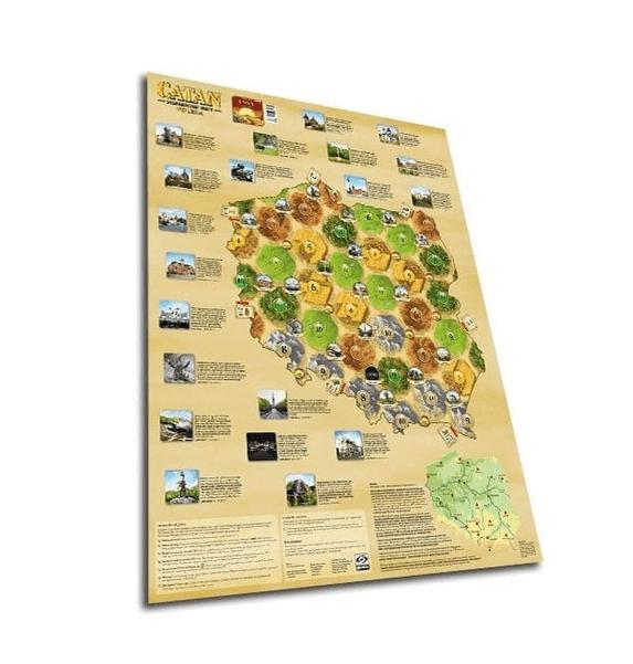 Mapa Polski do gry CATAN. Wyjątkowa plansza, która umożliwia rozegranie partii CATANu na mapie Polski. Poznaj najciekawsze miejsca i odwiedź najsłynniejsze miasta. CATAN: Polska to ten sam, lubiany i przyjemny CATAN w nowej odsłonie.