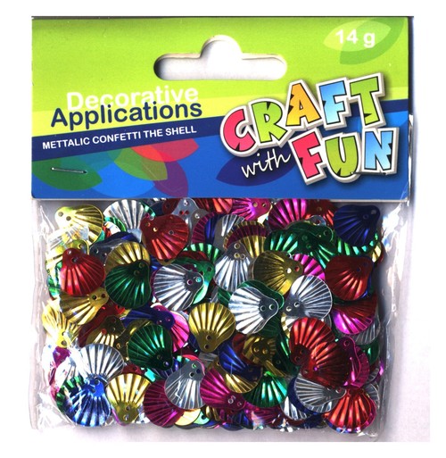 Ozdoby dekoracyjne z dziurką, cekiny w formie muszelek.