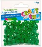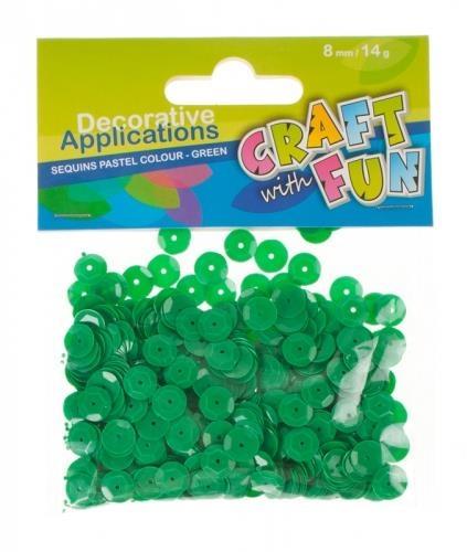 Cekiny metaliczne w zielonym kolorze. W opakowaniu 14 g.