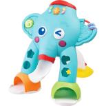 Zabawka w kształcie słonia, opływowymi kształtami i nasyconą kolorystyką zachęca do aktywnej zabawy. Wspiera rozwój dużej i małej motoryki, a także pobudza malucha sensorycznie.