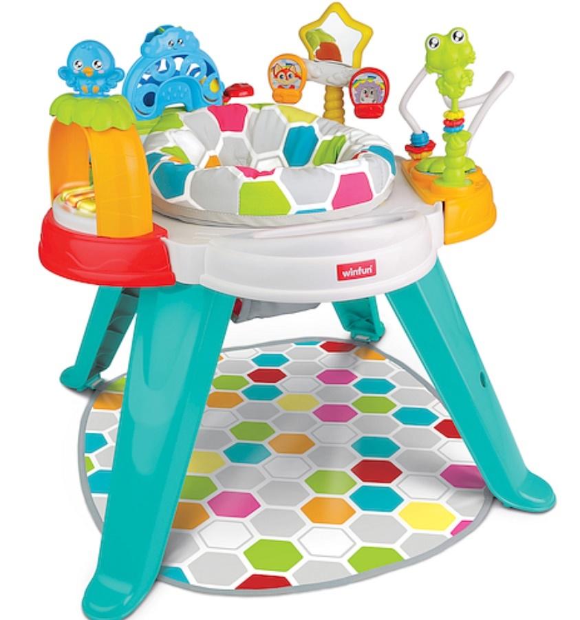 Rodzic może umieścić dziecko w siedzisku, gdzie będzie mogło bezpiecznie się bawić dołączonymi, atrakcyjnymi zabawkami.