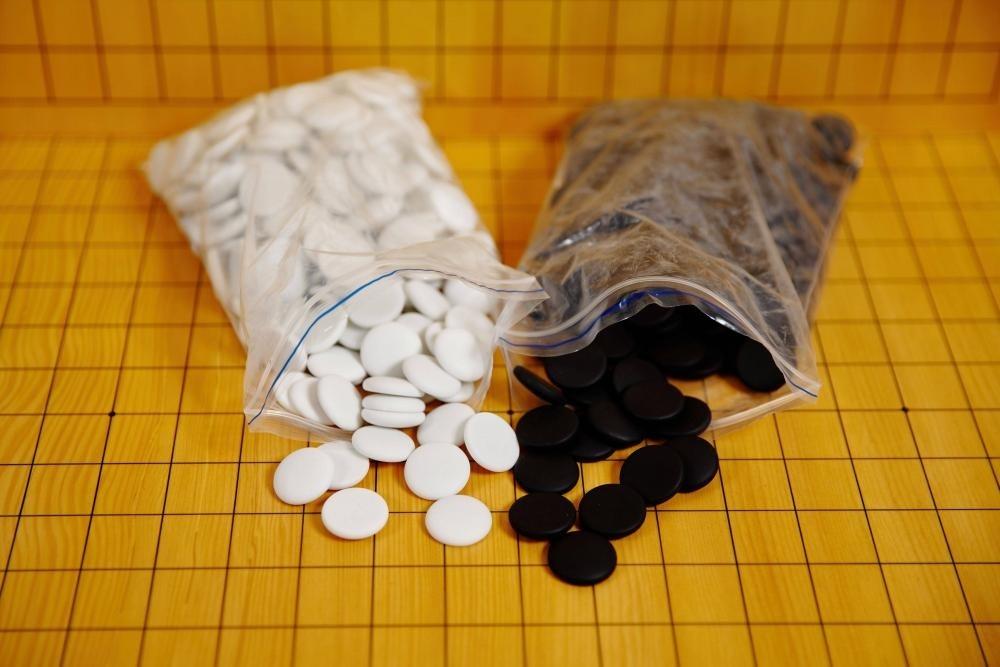 Zestaw solidnych kamieni do gry w Go składa się ze 181 kamieni czarnych i 180 kamieni białych, które są zapakowane w dwa plastikowe woreczki.