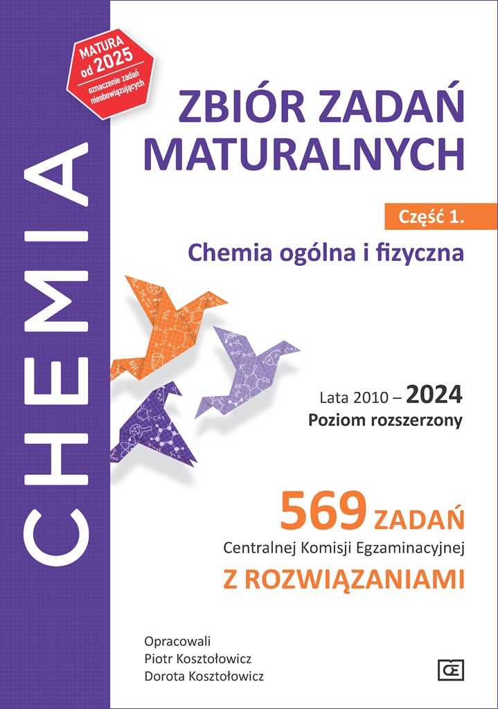 Najnowsze wydanie „Zbioru zadań maturalnych” uzupełniono o zadania, które wystąpiły w arkuszach maturalnych CKE w maju i w czerwcu 2024 r. Zbiór podzielono na dwie odrębne części: pierwsza – zawiera zadania z chemii ogólnej i fizycznej, a druga – zadania z chemii nieorganicznej i organicznej. Od roku szkolnego 2024/2025 obowiązuje skrócona wersja podstawy programowej z roku 2019, dlatego zadania dotyczące usuniętych treści, jako nieobowiązujące, zostały oznaczone symbolem nożyczek. Treść zadań z matury 2023 i 2024 zaznaczono w książce kolorowym tłem. W zadaniach dotyczących doświadczeń zamieszczono barwne fotografie, ilustrujące przebieg lub efekt końcowy reakcji chemicznych. Do wszystkich zadań podano szkice rozwiązań i odpowiedzi.