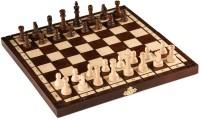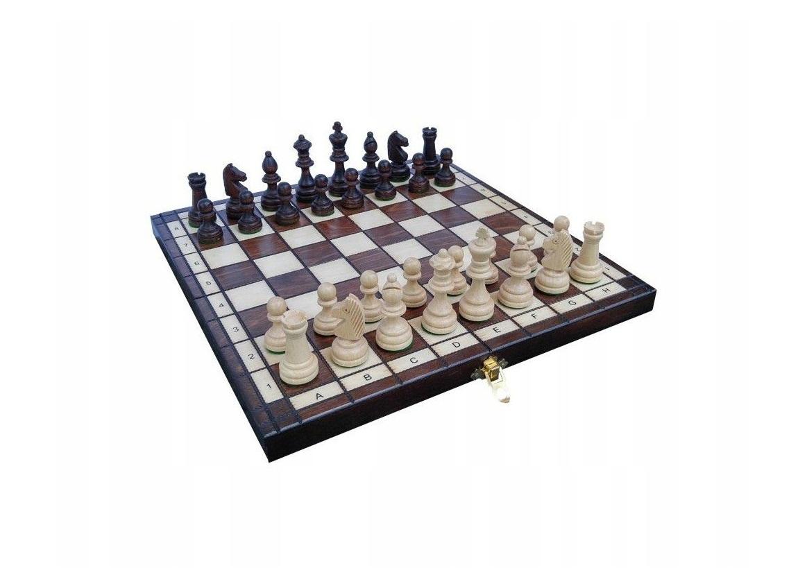 Gra ""Szachy turniejowe"" zawiera ładną, drewnianą szachownicę z pionkami w drewnie.