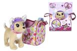 Pluszowy piesek Chihuahua w sportowej stylizacji, pluszak w kasku ochronnym. Zestaw dopełnia kolorowa torba transportowa z wzorem w gwiazdki, posiada z tyłu trzy rzepy, za pomocą których można ją łatwo przymocować do kierownicy roweru lub hulajnogi, dzięki czemu dzieci zawsze mogą zabrać ze sobą na przejażdżki. Mały chihuahua ma 20 cm wzrostu i jest wykonany z miękkiego pluszu.