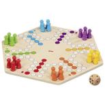 Drewniana plansza z 26 pionkami, nadrukowana z obu stron. Pozwala grać nawet 6 osobom, rozwijając współpracę, logiczne myślenie oraz cierpliwość. Klasyczna gra rodzinna, wprowadzająca do świata strategii i zasad fair play.