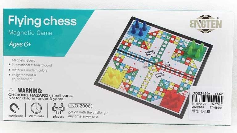 Chińczyk magnetyczny 20 cm. Produkt nie potrzebuje baterii. Zabawka przeznaczona dla dzieci powyżej 6 roku życia.