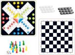 Chińczyk: gra towarzyska dla 2-4 osób. Do gry używa się: planszy, kostki i 16 pionków w czterech różnych kolorach. Warcaby: gra towarzyska dla dwóch osób znana na całym świecie od ośmiuset lat. Do gry używa się planszy i 25 pionków w dwóch kolorach. Wiek graczy: 5+ Liczba graczy: 2-4