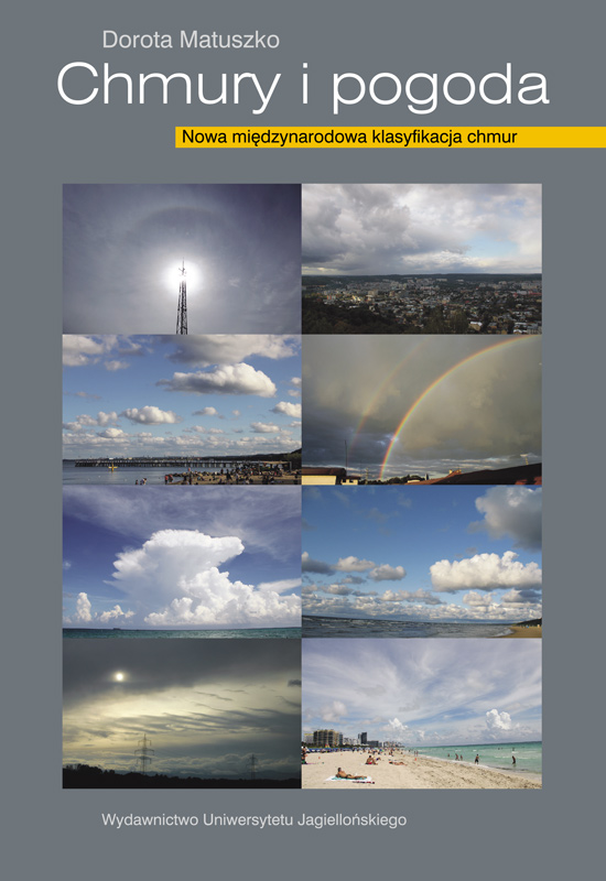 Monografia jest uzupełnieniem wcześniejszych publikacji: Chmury - klasyfikacja, rozpoznawanie, pogoda (2003) oraz Chmury i pogoda (2006, 2009). Niniejszą książkę poprawiono i zaktualizowano, uwzględniając nową międzynarodową klasyfikację chmur, wprowadzoną przez Światową Organizację Meteorologiczną w 2017 roku. Opisano nowy gatunek chmur - volutus - oraz pięć nowych zjawisk szczególnych: asperitas, fluctus, cavum, murus, cauda. Scharakteryzowano nowo wprowadzoną chmurę towarzyszącą flumen, a także przedstawiono chmury orograficzne i szczególne: flammagenitus, silvagenitus, cataractagenitus, homogenitus, homomutatus. Dodano poglądowe schematy ułatwiające rozpoznawanie chmur w poszczególnych piętrach wysokościowych. Monografię wzbogacono o kolejne rozdziały ilustrowane barwnymi fotografiami, aby jeszcze lepiej służyła wszystkim osobom zainteresowanym poszerzeniem wiedzy o pogodzie, której wizualnym, kompleksowym wskaźnikiem są właśnie chmury.