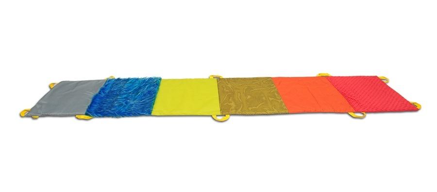 Barwny chodnik sensoryczny daje nowe możliwości zabaw. Posiada 6 różnych faktur ze starannie dobranych materiałów, każdy dostarcza innych wrażeń dotykowych, rozbudza wiele różnych emocji. Chodnik sensoryczny rozwija zmysł dotyku, ćwiczy wrażliwość i koncentrację. Ponadto znakomicie wspomaga rozwój koordynacji wzrokowo - ruchowej, ćwiczy refleks i spostrzegawczość, równocześnie umożliwia czerpanie radości płynącej z ruchu i przebywania w grupie.