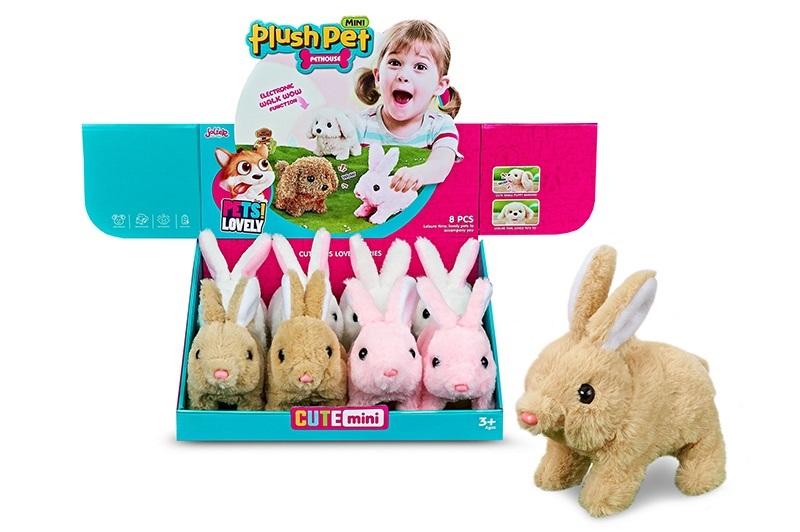 Mix wzorów. Towar wysyłamy Funkcje: kica do przodu, ruchomy pyszczek i uszy, odgłos piszczenia, wym. Królika: 14,5 x 16,5 x 9 cm., Wym. Opk.: 34,5 x 14 x 28 cm., Baterie: 2 x aa 1,5v - brak w zestawie, wiek: 3+