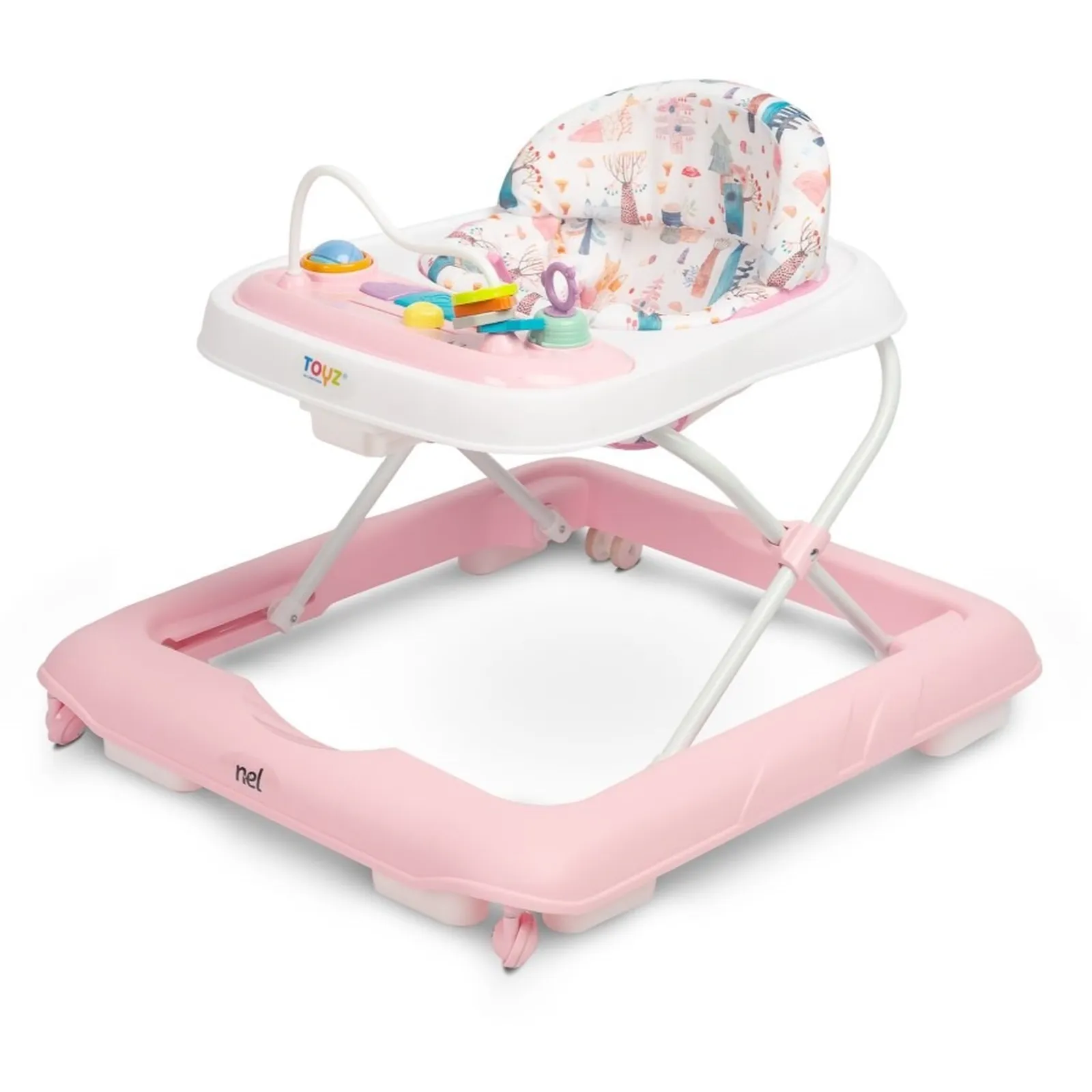 Nel to przystępny cenowo i stylowy chodzik dla maluchów marki Toyz. Wyróżnia go elegancka kolorystyka i wygoda użytkowania. Specjalna konstrukcja umożliwia dopasowanie położenia siedziska do wysokości malucha tak, by stópki swobodnie dotykały podłoża. Wyposażony jest w dźwiękowy panel zasilany bateriami i manualne zabawki, które zapewniają dobrą zabawę.