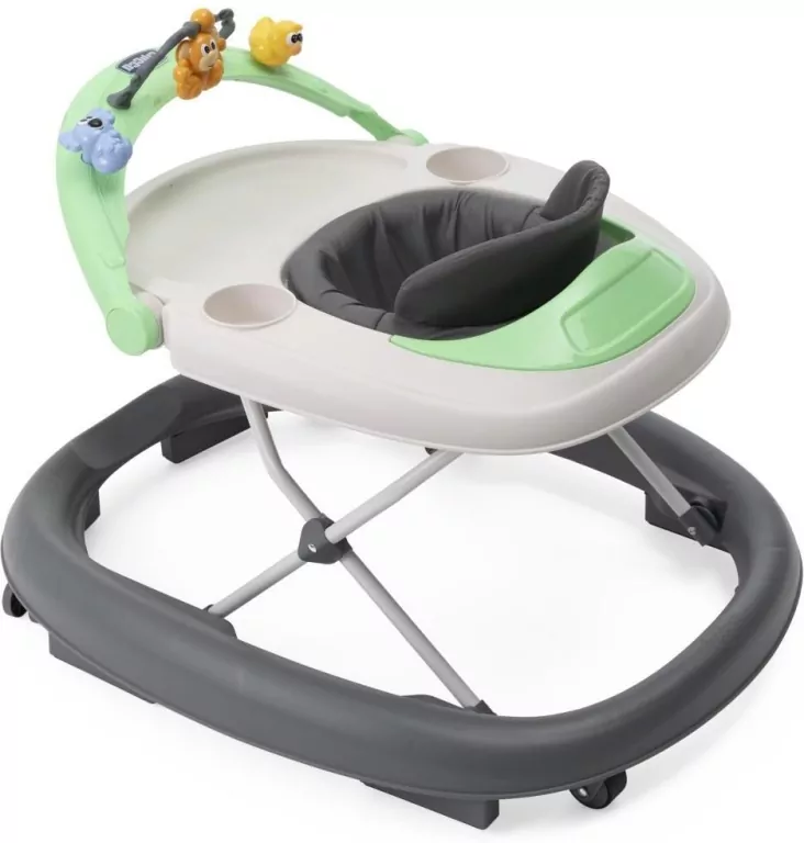 Chodzik Walky Talky Lite Zabawny chodzik, zaprojektowany, aby zapewnić rozrywkę Twojemu dziecku podczas pierwszych wycieczek, ze zintegrowanym pałąkiem z zabawkami. Pałąk z zabawkami jest regulowany i zawiera trzy kolorowe zabawki, zaprojektowane tak, aby stymulować rozwój sensoryczny i motoryczny Twojego dziecka. Siedzisko jest szerokie i wygodne, aby zapewnić odpowiednie wsparcie podczas użytkowania. Wysokość można łatwo regulować, aby podążać za wzrostem dziecka w czasie. Chodzik składa się kompaktowo, co ułatwia przechowywanie lub transport.