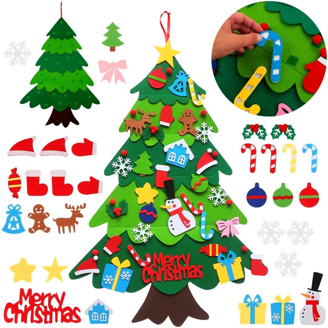Stwórzcie własną, świąteczną dekorację z tą magiczną, filcową choinką! Ta zabawka to nie tylko wspaniała ozdoba, ale przede wszystkim kreatywna i bezpieczna zabawa dla dzieci, która pozwala na nieskończoną ilość aranżacji. Choinka jest łatwa do zawieszenia na ścianie lub drzwiach, a dzięki systemowi na rzepy, dziecko może dowolnie przyczepiać i zmieniać położenie wszystkich ozdób.