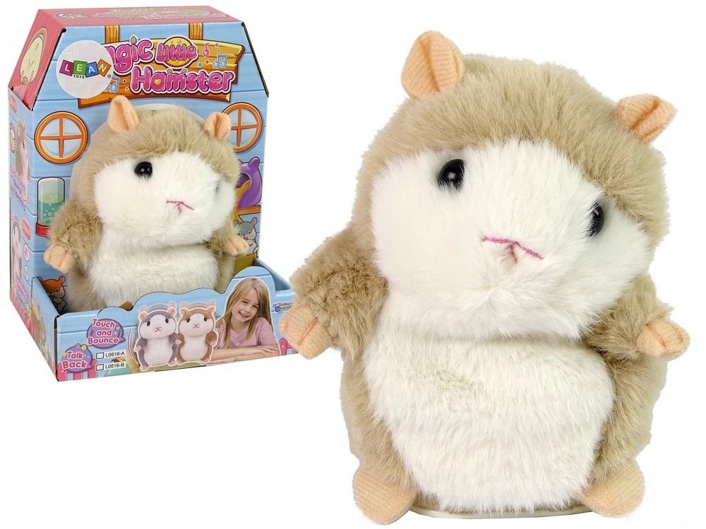 Urocza maskotka chomik może stać się najlepszym przyjacielem Twojego dziecka. Wesoły i pełen życia gadający chomik sprawi, że Twoje dzieci natychmiast się w nim zakochają. Może pomóc także w nauce pierwszych słów, tabliczki mnożenia lub po prostu do super zabawy. Doskonały sposób, aby obowiązki nie były przymusem.