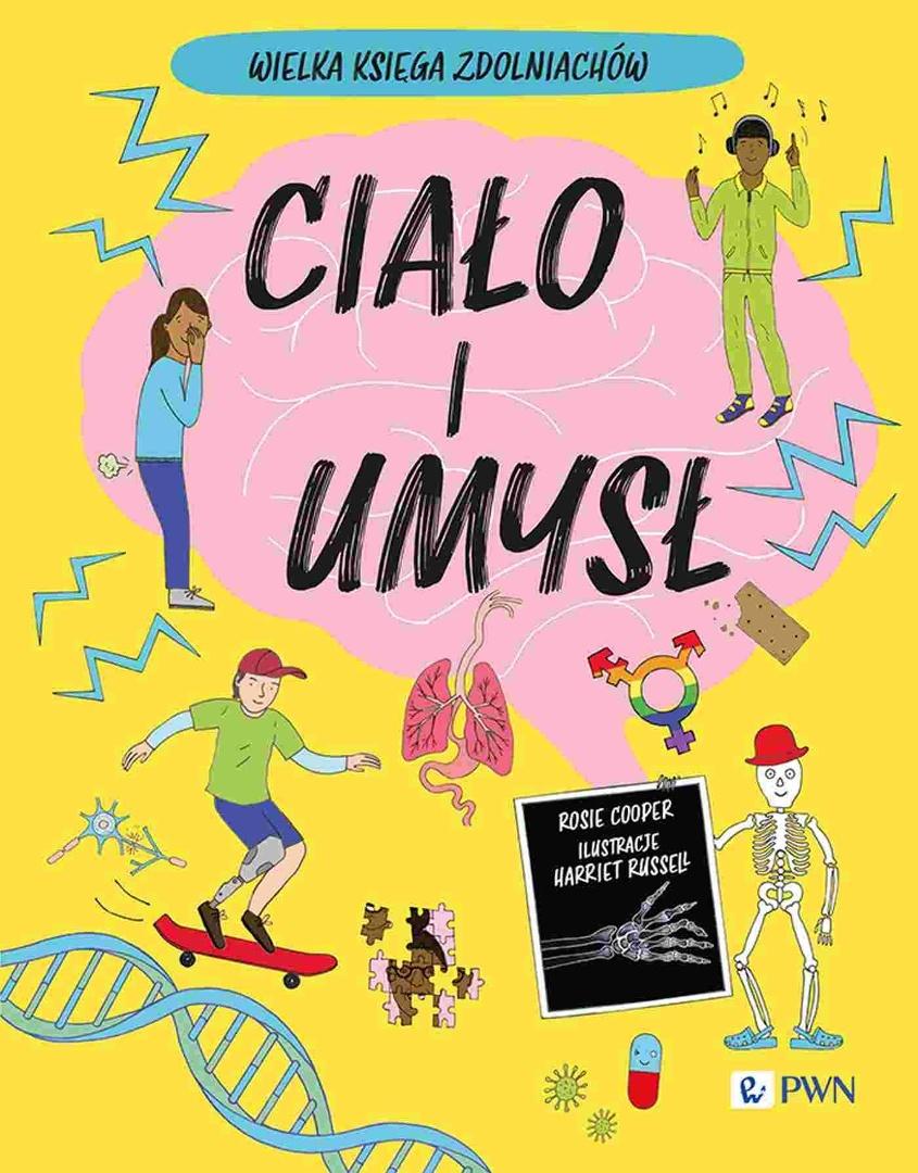 Co sprawia, że twoje ciało działa? Czy to wszystko dzieje się w Twoim umyśle? Wybierz się na wycieczkę po ludzkim ciele od stóp do głów i wszystkim, co pomiędzy nimi. Najnowsza odsłona serii Wielka Księga Zdolniachów to przystępne, zabawne i ciekawe wprowadzenie do nauki o ludzkim ciele. Pełne dziwacznych faktów i zdumiewających aktywności - mali mózgomaniacy odkryją wszystko, co trzeba wiedzieć o ciele i genialnym mózgu, który sprawia, że to wszystko działa.