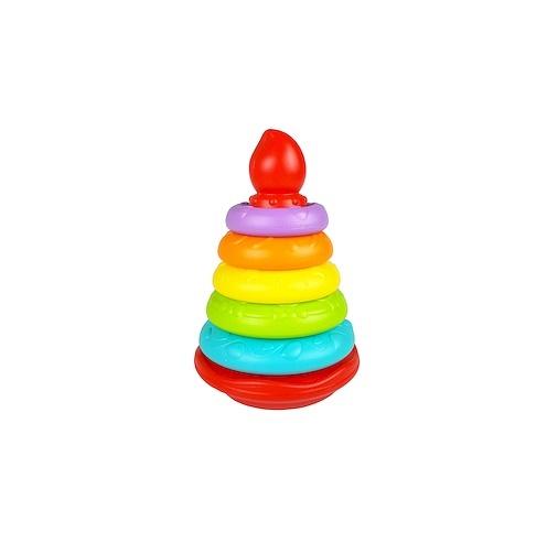 CIASTECZKOWA PIRAMIDKA Ten wielowarstwowy, pysznie wyglądający tort to piramidka z kolorowymi obręczami. Układanie kółeczek na stojaku jest doskonałym ćwiczeniem dla maluszka. Dziecko może obserwować kolory, sortować i układać krążki. Poprzez zabawę, uczy się rozpoznawania kolorów, szeregowania, liczenia, logicznego myślenia oraz rozpoznawania przeciwieństw (duży-mały, na górze -na dole). Ciasteczkowa Piramidka: • 5 kolorowych kółeczek • Każde kółeczko ma inny kolor, wielkość i unikalną strukturę Ciasteczkowa Piramidka pomaga rozwijać umiejętności: • Poznawcze- rozwija samodzielne myślenie • Rozwój fizyczny – rozwijając małą motorykę • Rozwój społeczny – rozwijając kreatywność Specyfikacja: • 000774 • Wiek: 6m+ • EAN: 4895038507746 • Wymiary produktu: szer. 14 cm., wys. 22cm., gł. 14 cm. • Bezpieczeństwo: EN71-1, EN71-2, ENT1-3 • Importer: Anek dla Dzieci