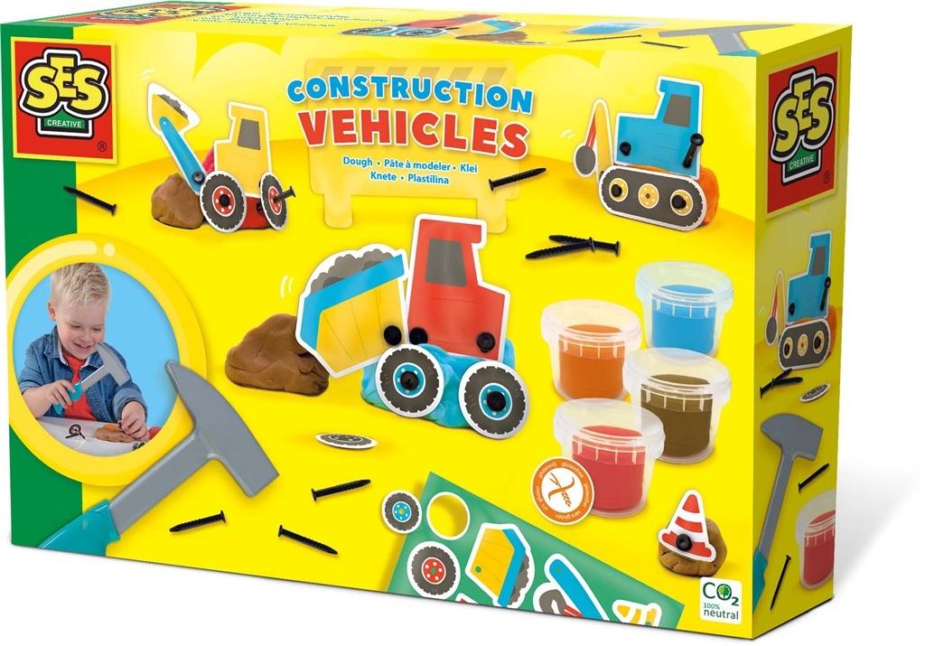Czy jest coś lepszego niż majsterkowanie młotkiem i gwoździami? Wbij plastikowe gwoździe w różne części ciasto masy i zbuduj najfajniejsze pojazdy budowlane. Roboty drogowe? Zablokuj drogę barierkami i pachołkami drogowymi i zabierz się do pracy z czterema kolorami ciasto masy.
