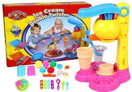 ZESTAW CIASTOLINA LODZIARNIA W skład zestawu wchodzi 21 elementów: - urządzenie do wyciskania lodów - foremki - kubeczki oraz miseczki - inne akcesoria potrzebne do tworzenia kolorowych deserów oraz 5 pojemników z ciastoliną (czerwony, zielony, żółty, różowy, niebieski) Dodatkowym autem jest możliwość mieszania ciastolin ze sobą co pozwala uzyskać zupełnie nowe kolory. Wymiary maszyny do lodów: 16cm x 13cm x19cm Wymiary opakowania: 37cm x 8.5cm x 26cm Zabawka przeznaczona dla dzieci powyżej 3 roku życia. Zestaw zapakowany w kolorowe pudełko, idealnie nadające się na prezent.