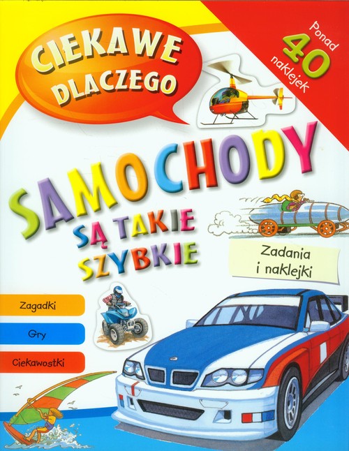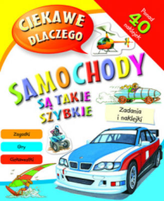 Na stronach tej książki znajdziesz wiele ciekawych informacji na temat maszyn, które jeżdżą, latają i pływają, a ponadto zabawne zgadywanki, zajmującą grę przygodową i mnóstwo naklejek. Otwórz własny warsztat samochodowy, sprawdź też, jak poradzisz sobie jako kierowca samochodu wyścigowego, startujący w rajdzie dookoła świata. Tytuły w serii: Ciekawe dlaczego zwierzęta zadziwiają, Ciekawe dlaczego samochody są takie szybkie, Ciekawe dlaczego dinozaury rządziły światem i Ciekawe dlaczego astronauci noszą skafandry kosmiczne.
