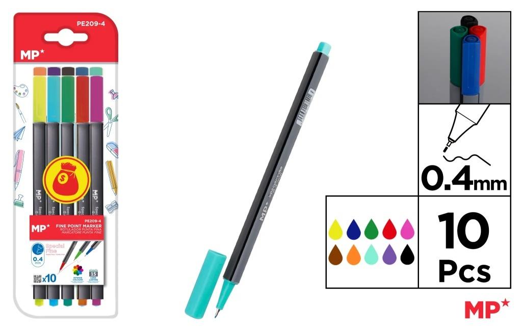 Cienkopis z końcówką 0,4mm. Do precyzyjnych rysunków, pisania, szkiców i projektów. Żywe i trwałe kolory. Blister 10 szt. 10 kolorów