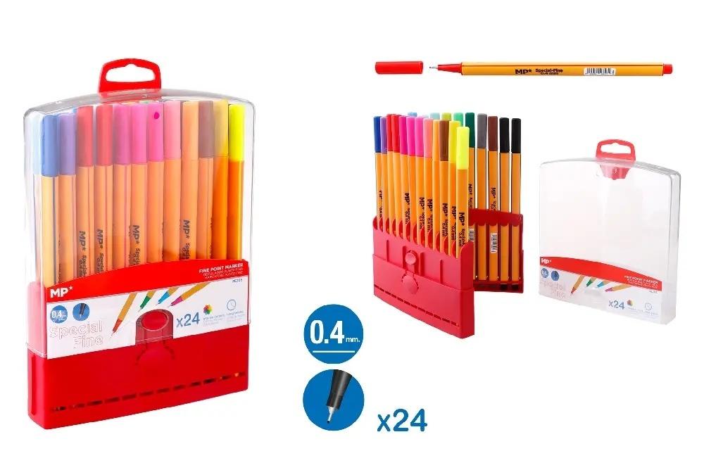 Cienkopis do precyzyjnych rysunków, pisania, szkiców lub projektów. Żywe i odporne kolory. Końcówka z cienkiego acetatu 0,4 mm. Sztywny plastikowy futerał w 24 różnych kolorach.