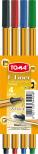 Cienkopisy z fibrową końcówką 0,4 mm, pomarańczowa budowa, niewysychający tusz, ładne i żywe kolory. Tusz łatwo spieralny, a metalowe wsparcie końcówki pozwala na niebrudzące kreślenie przy linijce. Dostępne są pojedynczo lub w kompletach po 4, 6 i 12 kolorów. Fibrowa końcówka 0,4 mm fibrowa. Dostępne kolory: czarny, niebieski, czerwony, zielony, żółty, jasno niebieski, różowy, jasno różowy, fioletowy, jasno zielony, pomarańczowy, brązowy.