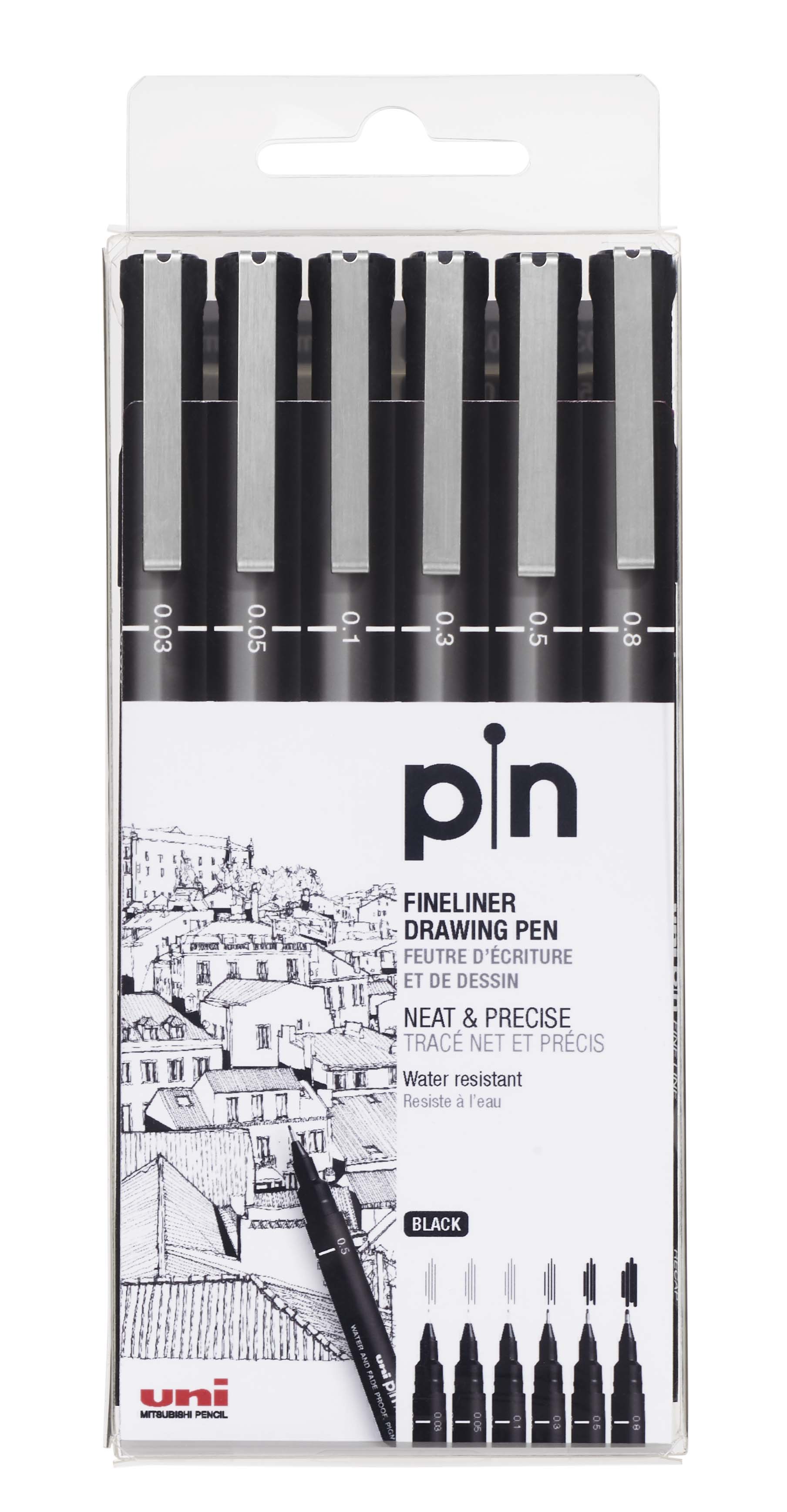 • grubość końcówek i kolory tuszu: czarny: 0,03; 0,5; 0,1; 0,2; 0,3; 0,4; 0,5; 0,6; 0,7; 0,8; 0,9; 1,0; 1,2 mm + pędzelek + końcowka ścięta czerwony, niebieski: 0,1; 0,2; 0,5 mm jasnoszary, ciemnoszary, sepia: 0,1; 0,5 mm + pędzelek