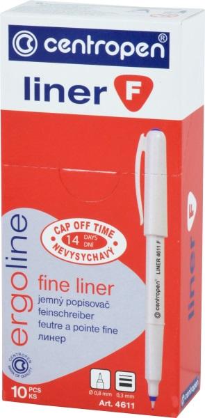 Cienkopis Centropen Liner 4611 F to jeden z najpopularniejszych produktów do pisania, oczywiście poza dobrze nam znanym długopisem czy piórem. Świetnie się sprawdza przy sporządzaniu notatek, jak również do zaznaczania lub podkreślania kolorem ważnych fragmentów tekstu. Dzięki zastosowanej płynnej formule pisze się przyjemnie i gładko, a pigment nie przebija przez papier.