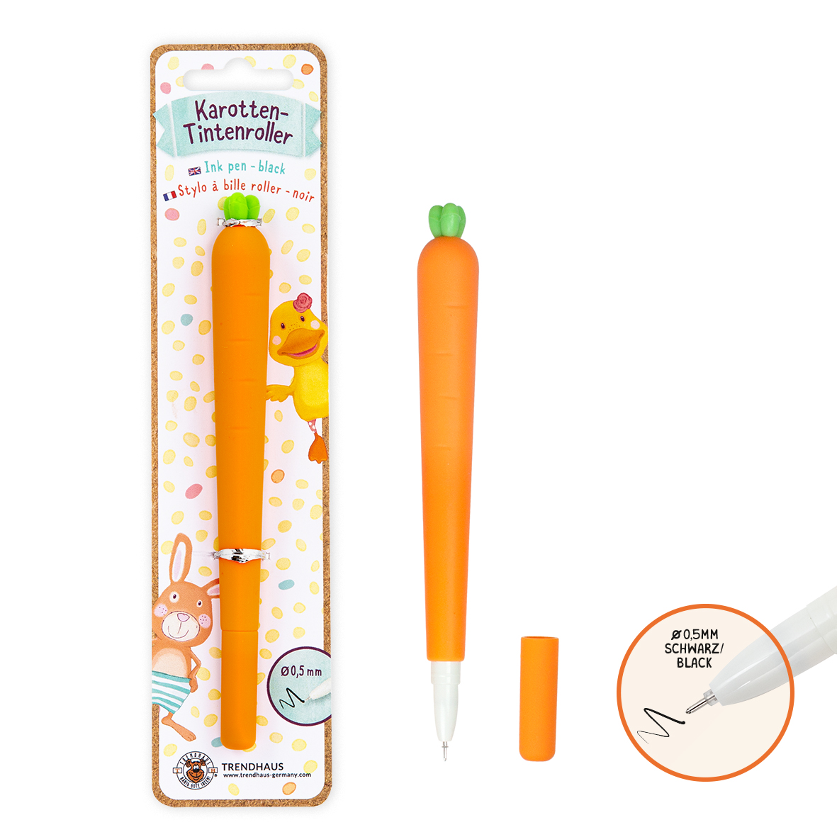 Ten zabawny długopis w kształcie marchewki z miękkim w dotyku uchwytem wyjątkowo dobrze leży w dłoni, a jego czarny wkład 0,5 mm sprawia, że pisanie jest wyjątkowo wygodne.